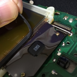 初代ゲームボーイの液晶ライン切れで、液晶側のフレキ熱圧着部分(おそらく異方性導電膜か導電ペースト)部分をアルミ箔を通してはんだごてで熱して再接続させる記事がありました。ただこの動画はおそらく暖めているところが間違っていて、この黒いゴムの帯を外してその上を熱した方が確実かつ早く修理できるのではないかと思います。
